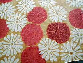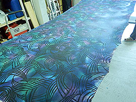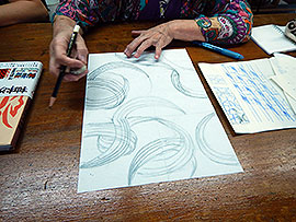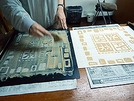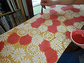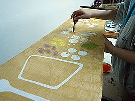 | ・北さん、下描きを描きます。 | ・代表で生地の精練していただきました。 | ・リピートを付けます。 | ||