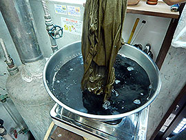 | ・色止めが済んで、水元します。 | ・地染です。 | ・差し進めます。 | ||