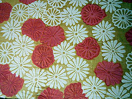 | ・リピートを付けて、型彫り終了です。 | ・地白型、彫れました。 | ・型彫り手伝って終了。 | ||