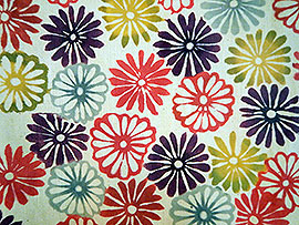 | ・素材:40センチ小幅木綿 ・染料:顔料、直接染料 ・技法:差しと冷染 |