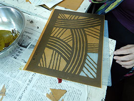 | ・カードの型付け。 | ・顔料で和紙の色差し。 | |