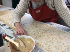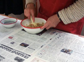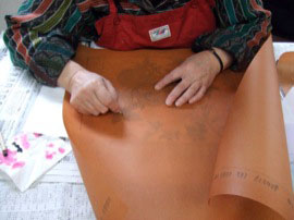 ・バック、ヘラで糊付けします。 |