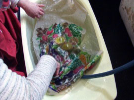 ・カメの手提げ袋完成。 |