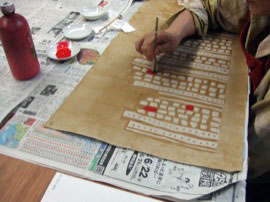 ・ザクロ紋の型彫り。デザインを写してます。 |