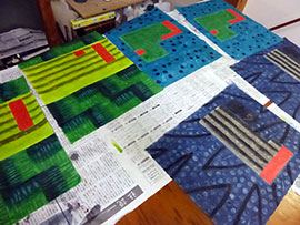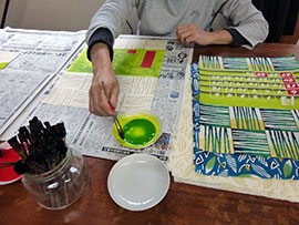 ・ランチョンマット、引き染しました。次回捺染と一緒に蒸します。 |