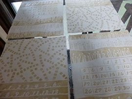 ・カレンダーの型、残りの紗貼り中。 | |