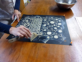・デザインを写して型彫り。 | |