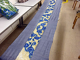 ・以前の型ですが、綿ショールに型付けしました。次回冷染します。 |