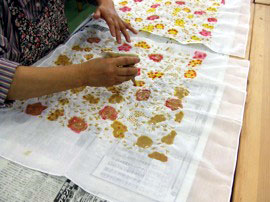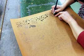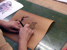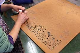 ・型彫り最終。紗貼りしてバンダナに型付けしました。