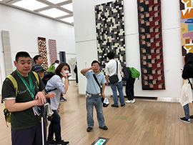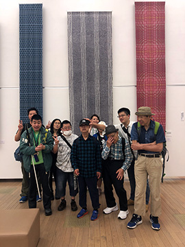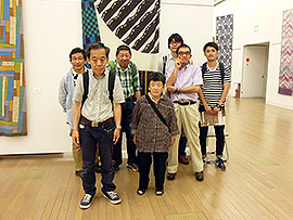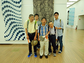 *2017年5月12日 金曜日。昨年と同じく3人の学園利用者が、国立新美術館の国展を見学。昼食は美術館のサンドイッチ。チョット食事中のハプニングもありましたが、食後、彫刻部、絵画部と廻りました。 |